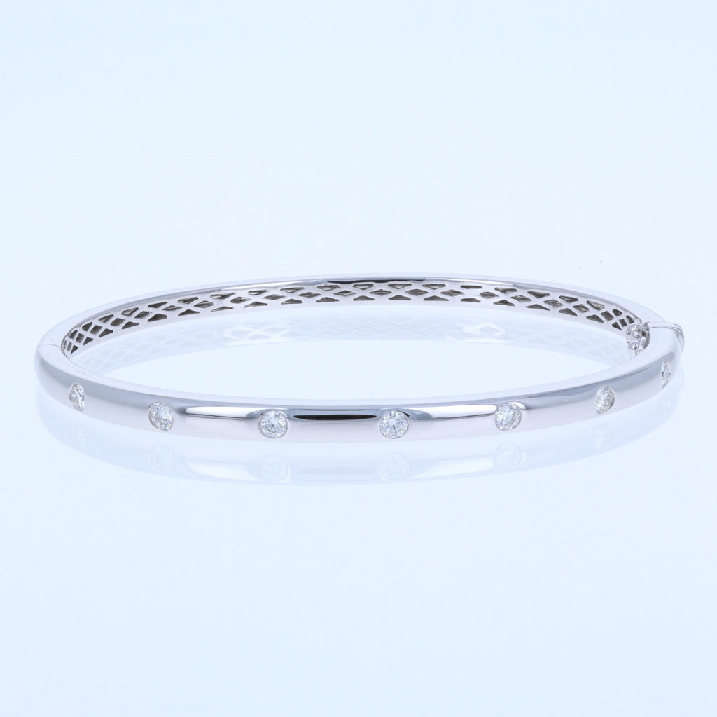 18KT WHITE GOLD BANGLE BRACELET WITH 7 GYPSY DIAMONDS ..44TW/7 DIA