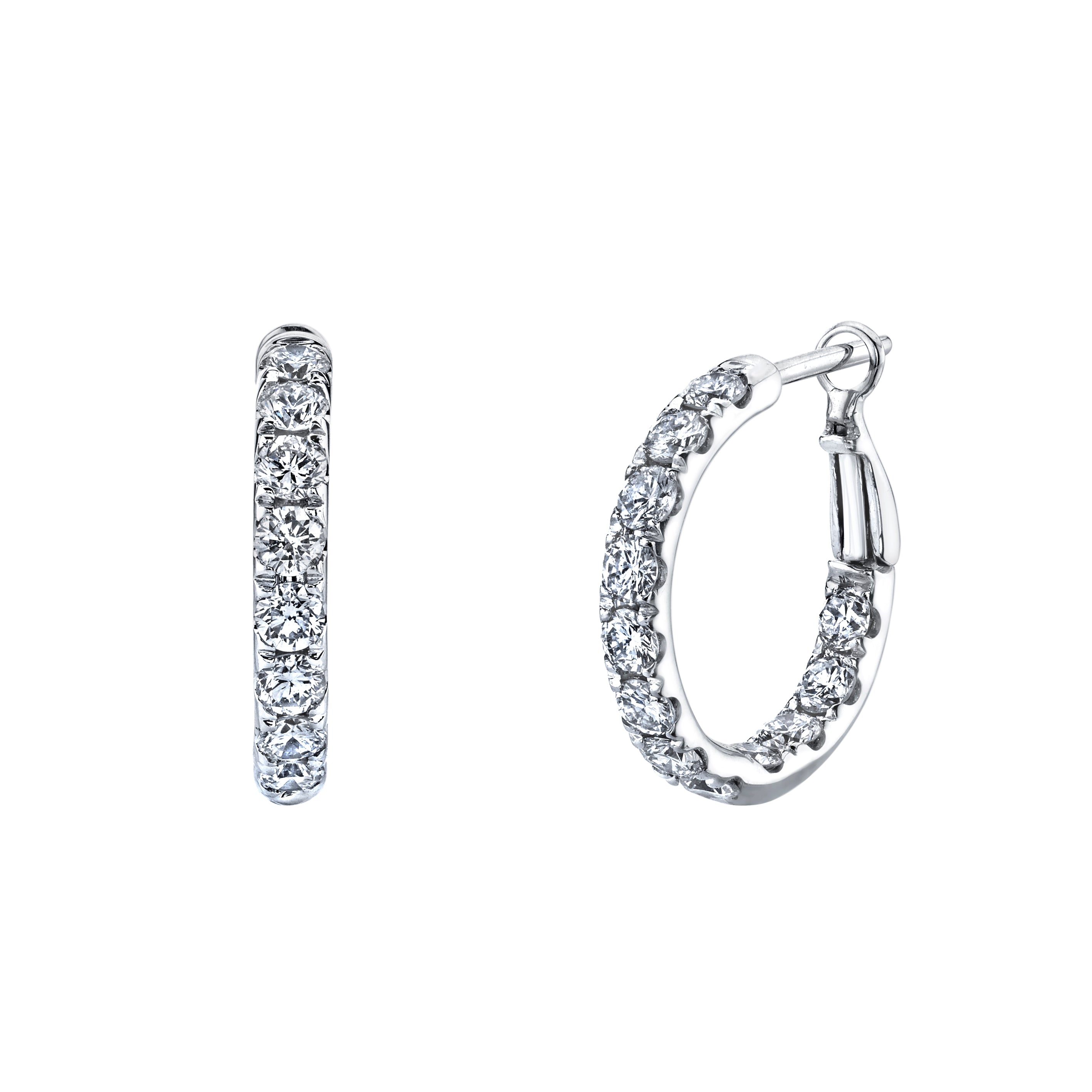 18KW 1.5" MICRO PAVE' DIAMOND HOOPS 5.01TW/60D
