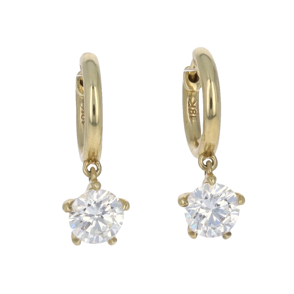 18KY HUGGIE HOOP EARRINGS WITH DIAMOND DROPS 2CT TW SI2 J