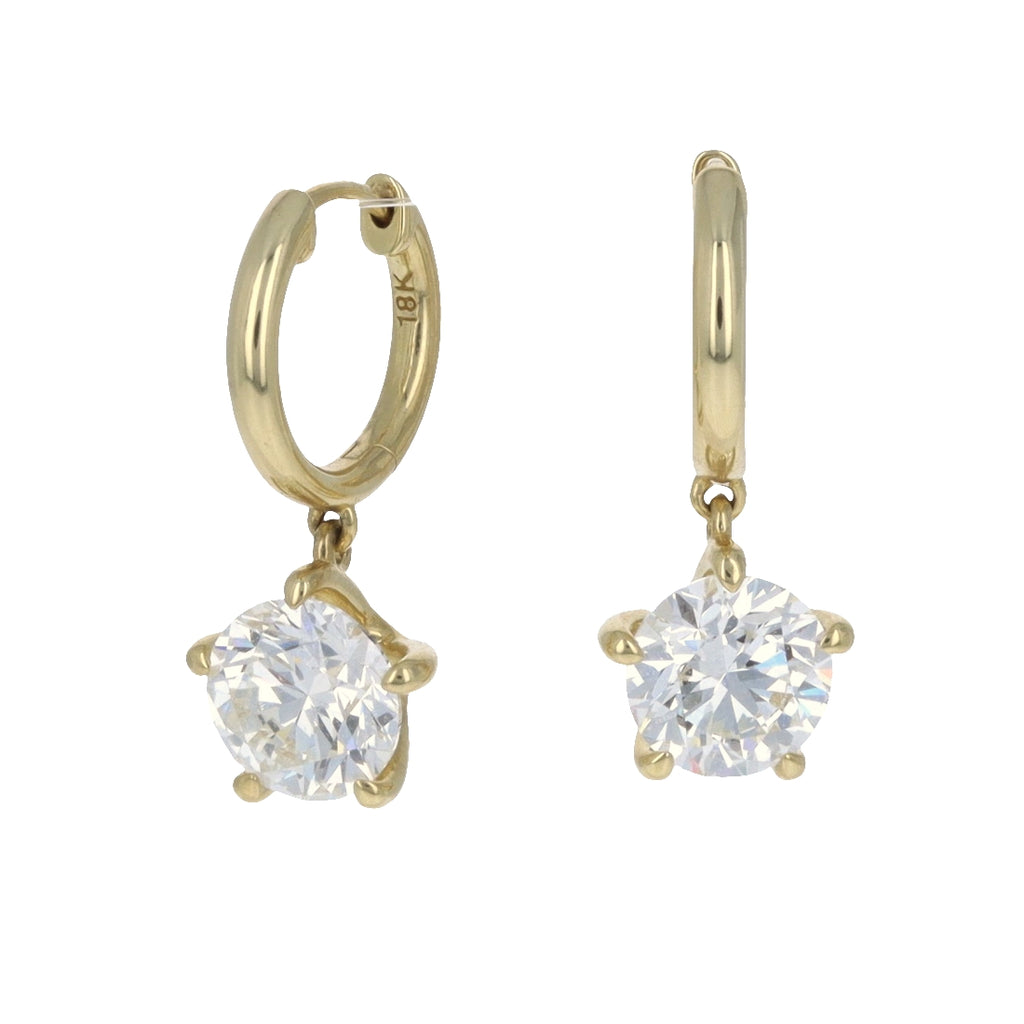 18KY HUGGIE HOOP EARRINGS WITH DIAMOND DROPS 4CT TW SI2 J