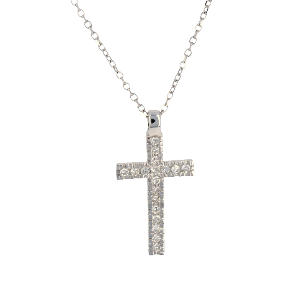 A Classic Diamond Cross, Both Sleek and Simple. Set in 14 Karat White High Polish Gold, the Diamond Cross Pendant is a Great Everyday Piece and Can Be Layered with Your Other Necklaces.